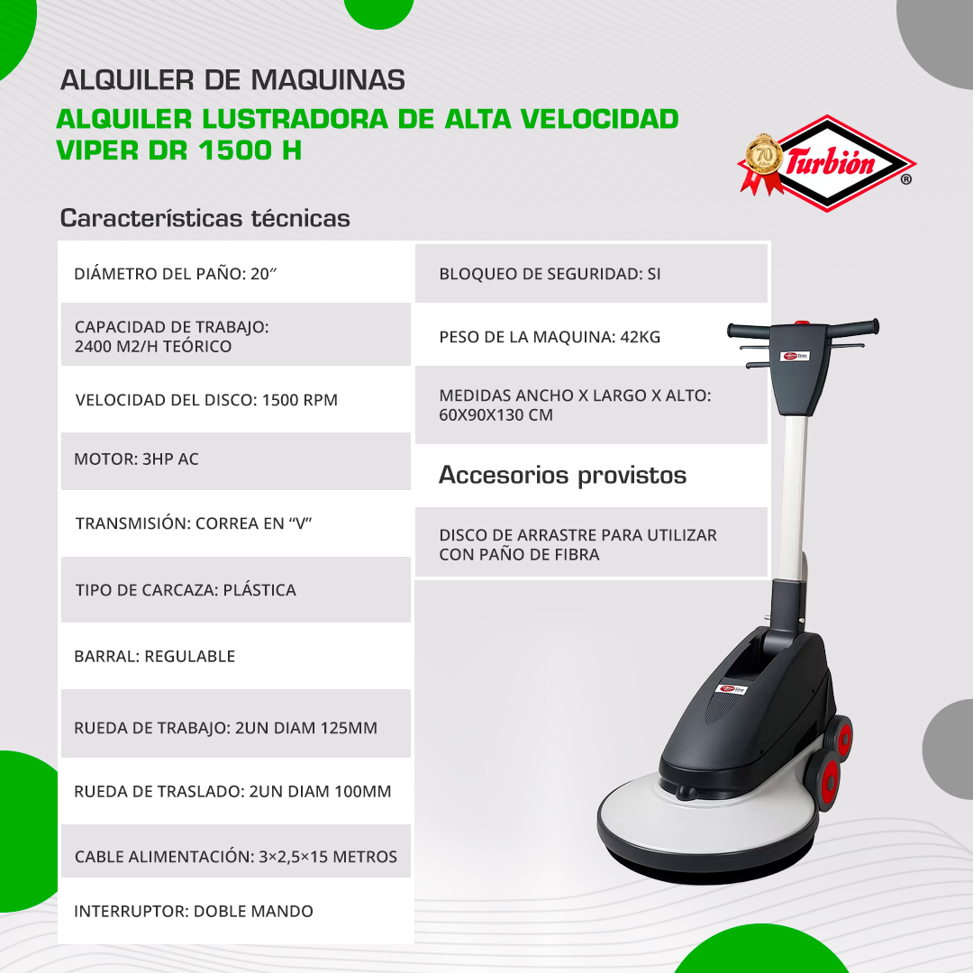 ALQUILER LUSTRADORA DE ALTA VELOCIDAD VIPER DR 1500 H