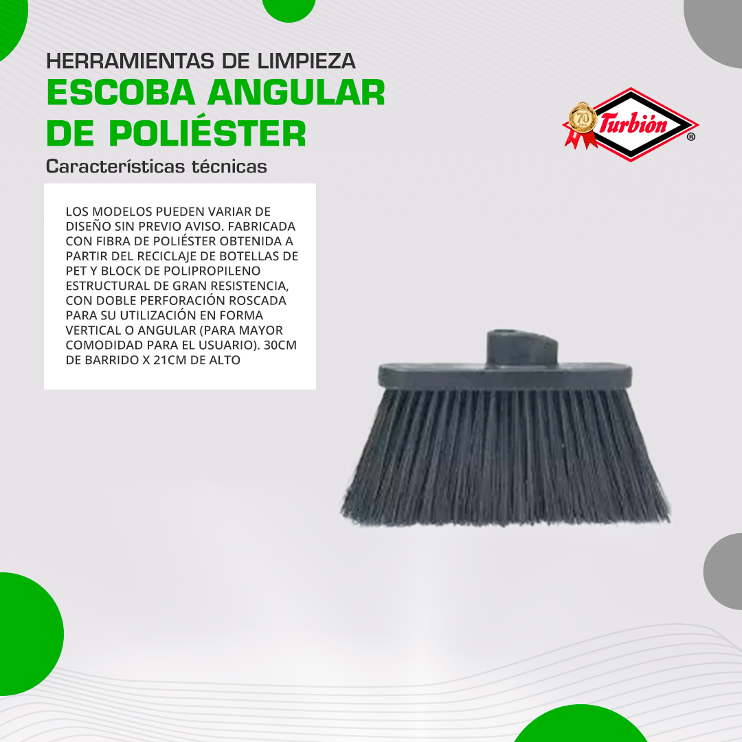 Fabricada con fibra de poliéster obtenida a partir del reciclaje de botellas de PET y block de polipropileno estructural de gran resistencia, con doble perforación roscada para su utilización en forma vertical o angular (para mayor comodidad para el usuario). 30cm de barrido x 21cm de alto