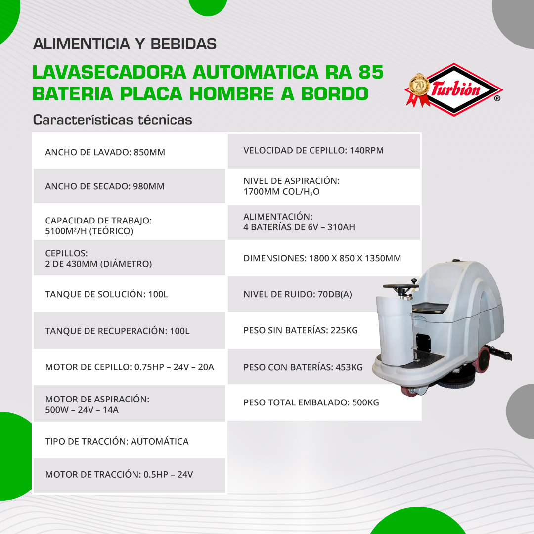 LAVASECADORA AUTOMATICA RA 85 BATERIA PLACA HOMBRE A BORDO