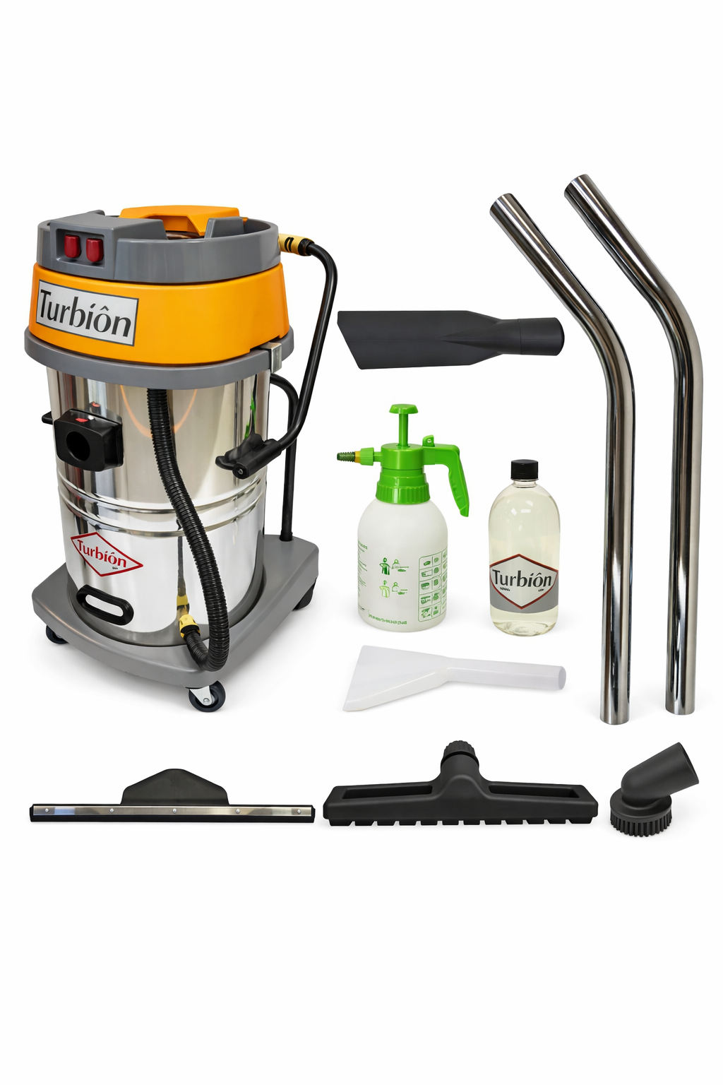 Además, este combo incluye un kit lavatapizados manual, que permite ampliar el uso del equipo para la limpieza de superficies textiles. El proceso consiste en aplicar el producto químico con el pulverizador manual sobre el tapizado y luego aspirar el líquido con la boquilla específica conectada a la aspiradora, logrando remover la suciedad y dejando la superficie limpia y prácticamente seca.