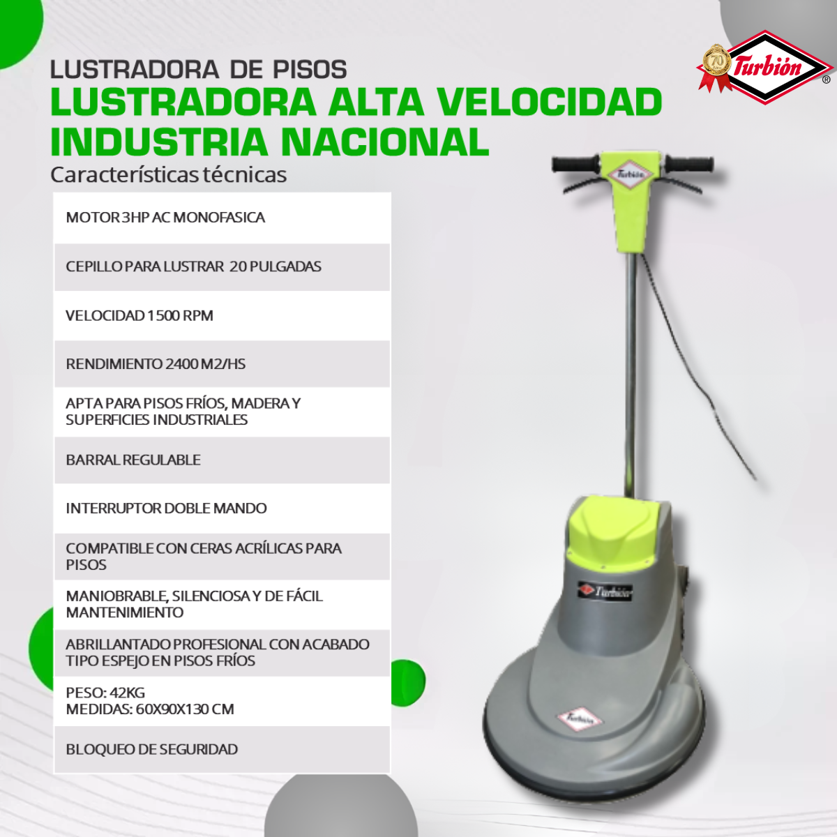 Además de su eficiencia, es una máquina silenciosa, con doble mando y bloqueo de seguridad para un trabajo cómodo y seguro. Funciona con ceras acrílicas y es una excelente aliada para tareas de mantenimiento periódico o restauración estética de superficies duras.