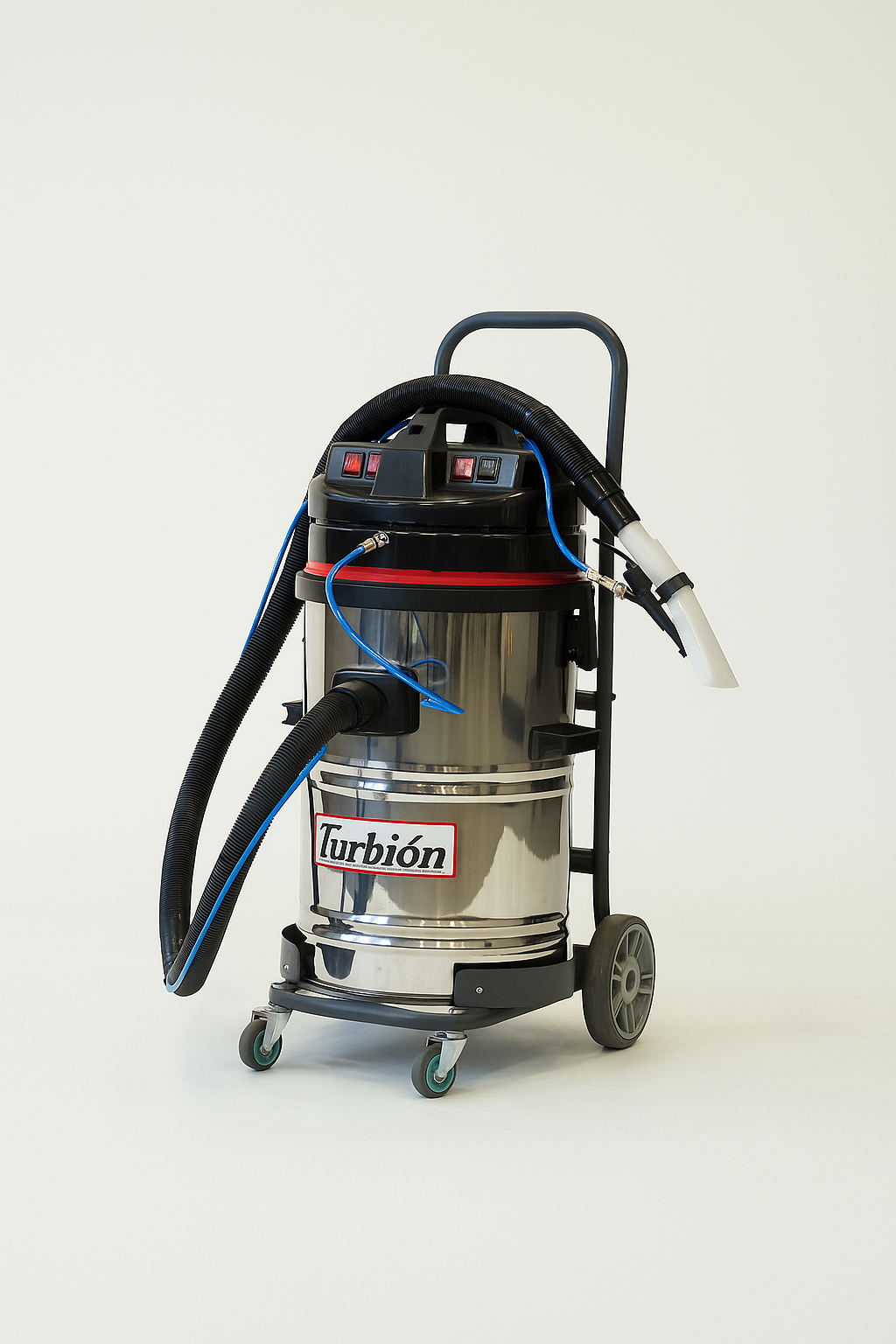 La Lavatapizados y alfombras profesional Tri power 3000w es una solución de limpieza industrial y comercial de alta eficiencia, diseñada para la limpieza profunda de superficies con revestimiento textil. Con su bomba inyectora de gran potencia y resistencia, y su sistema de extracción de líquido aspiradora potente con dos motores, esta máquina es capaz de eliminar eficazmente la suciedad y los residuos de alfombradas, moquetes, tapizados e interior de vehículos. Su diseño robusto y su tanque de acero inoxidable de 60 litros la hacen ideal para uso intensivo en industrias, comercios y espacios públicos.