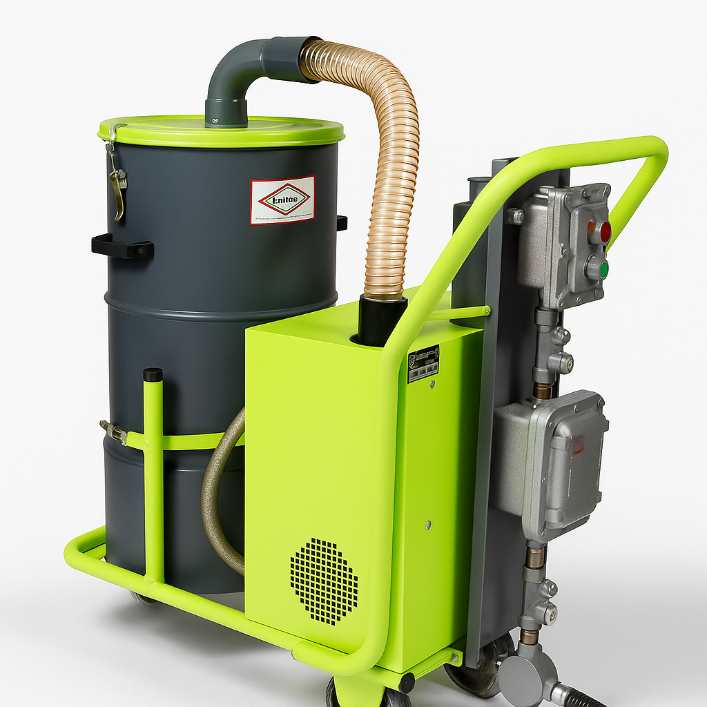 La Aspiradora Industrial Turbo 3HP Antiexplosiva Trifásica es un equipo robusto y confiable, ideal para ambientes industriales donde el riesgo de incendio o explosión es alto. Este modelo está especialmente diseñado para la industria alimenticia, el procesamiento de café, madera y almidón, entre otros sectores. Gracias a su motor certificado antiexplosivo de 3HP y su sistema eléctrico completamente blindado, puede trabajar de manera continua durante 24 horas sin interrupciones, garantizando un funcionamiento seguro en condiciones extremas.