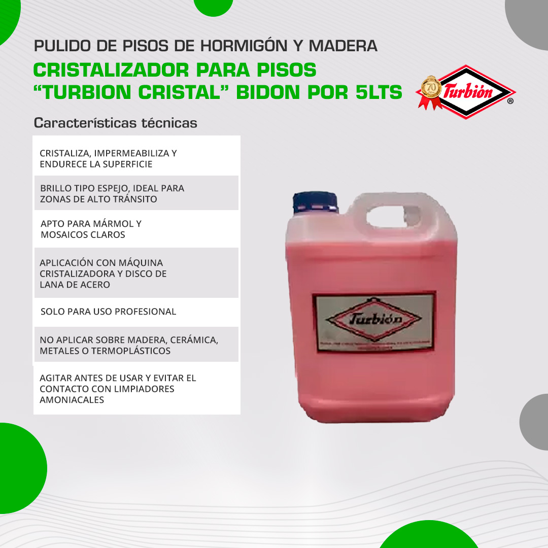 Turbión Cristal es un cristalizador profesional especialmente formulado para pisos sometidos a un alto tránsito, como shoppings, hoteles, aeropuertos u oficinas corporativas. Su fórmula endurece la superficie, la impermeabiliza y deja un brillo intenso tipo espejo que realza notablemente la estética del ambiente.